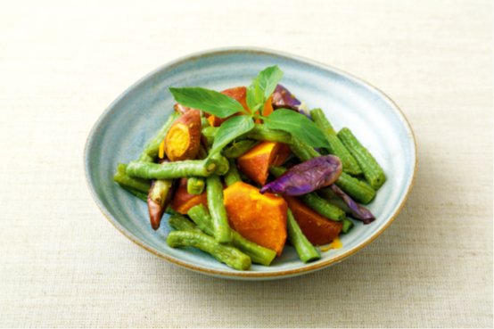 紅薯,紫茄及豇豆均能通腸排毒,綠咖哩辛溫益氣,促進消化,秋冬食之,正好下飯。