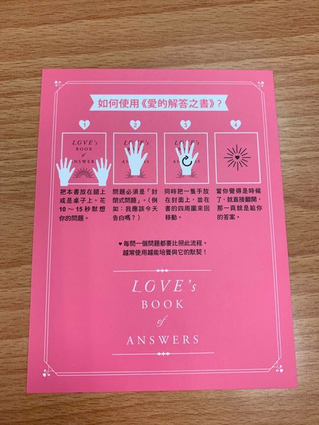 小編先代表廣大蒼生來試用一下全球唯一中文版的《愛的解答之書》,依照不同類別的愛之問,提供給大家一點參考😊