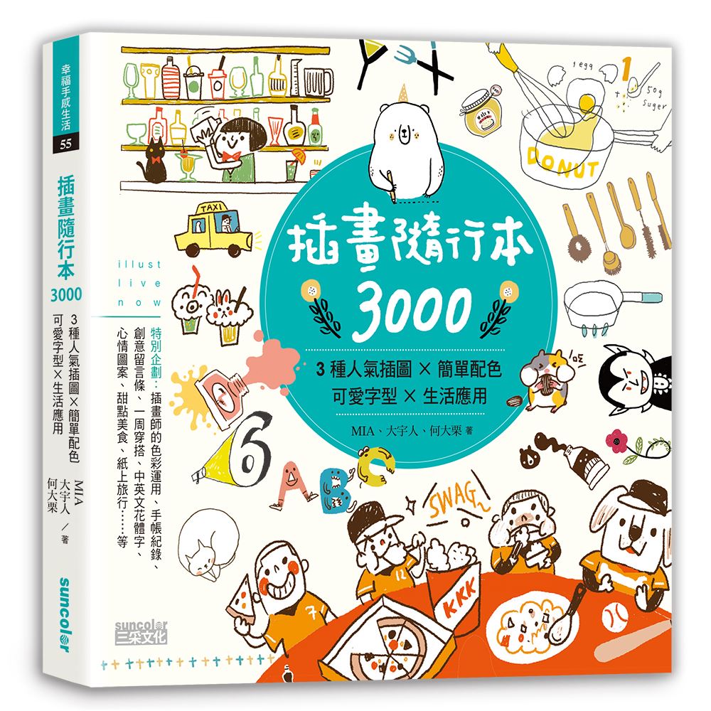 書中我們規劃的都是生活中常用的主題,也是我自己常在寫手帳、紀錄生活時會用上的插圖。和大宇、大栗3個人各自選了自己擅長的小單元,我們彼此獨立作業,但又互相邊畫邊交流(鼓勵彼此或是徵求意見,當然也一邊吐苦水,不過苦水是吐手邊其他的工作拉)。