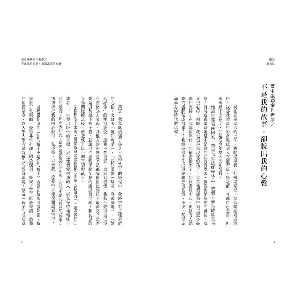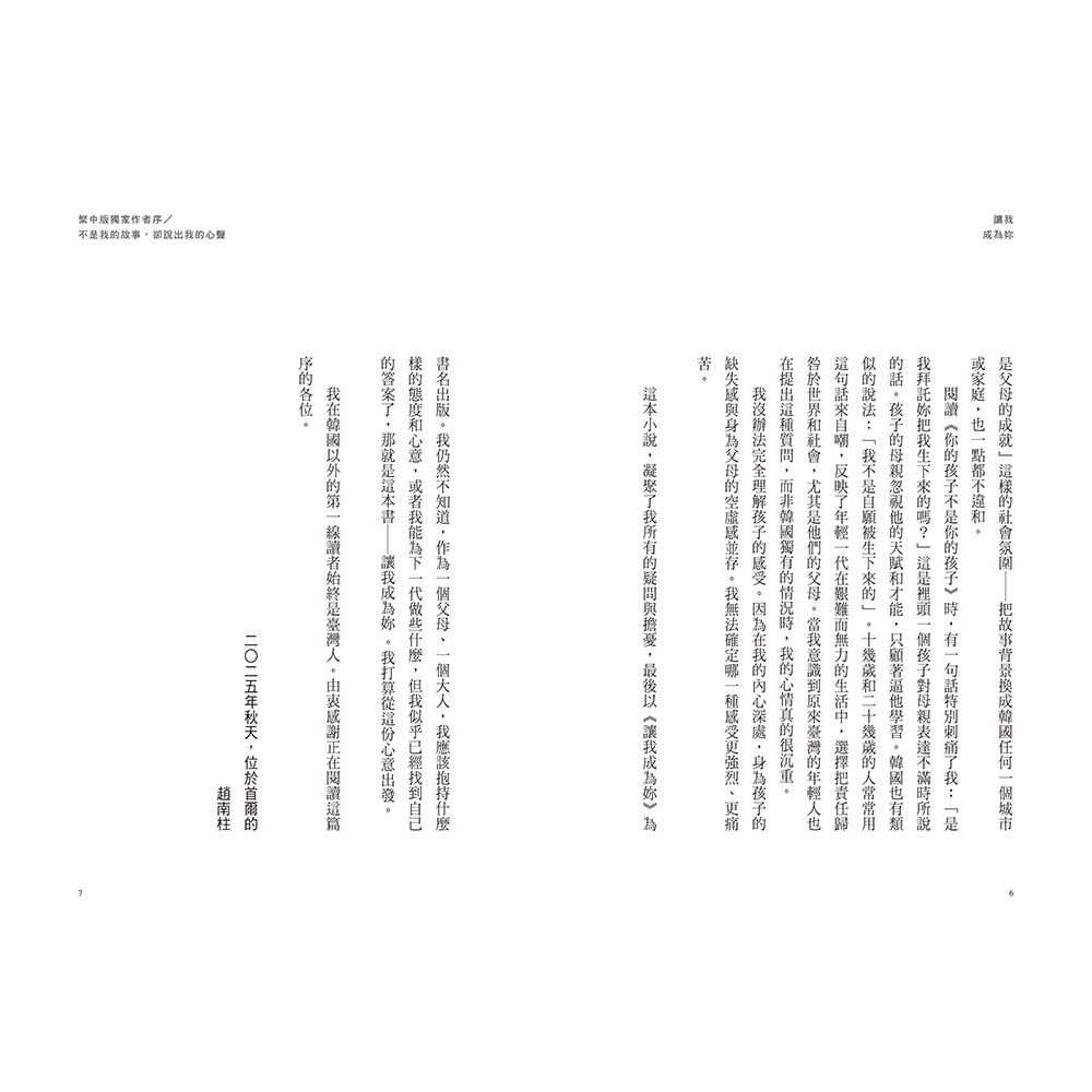 透過《讓我成為妳》,趙南柱寫下自己的日記,同時也構成一封給女兒的信。