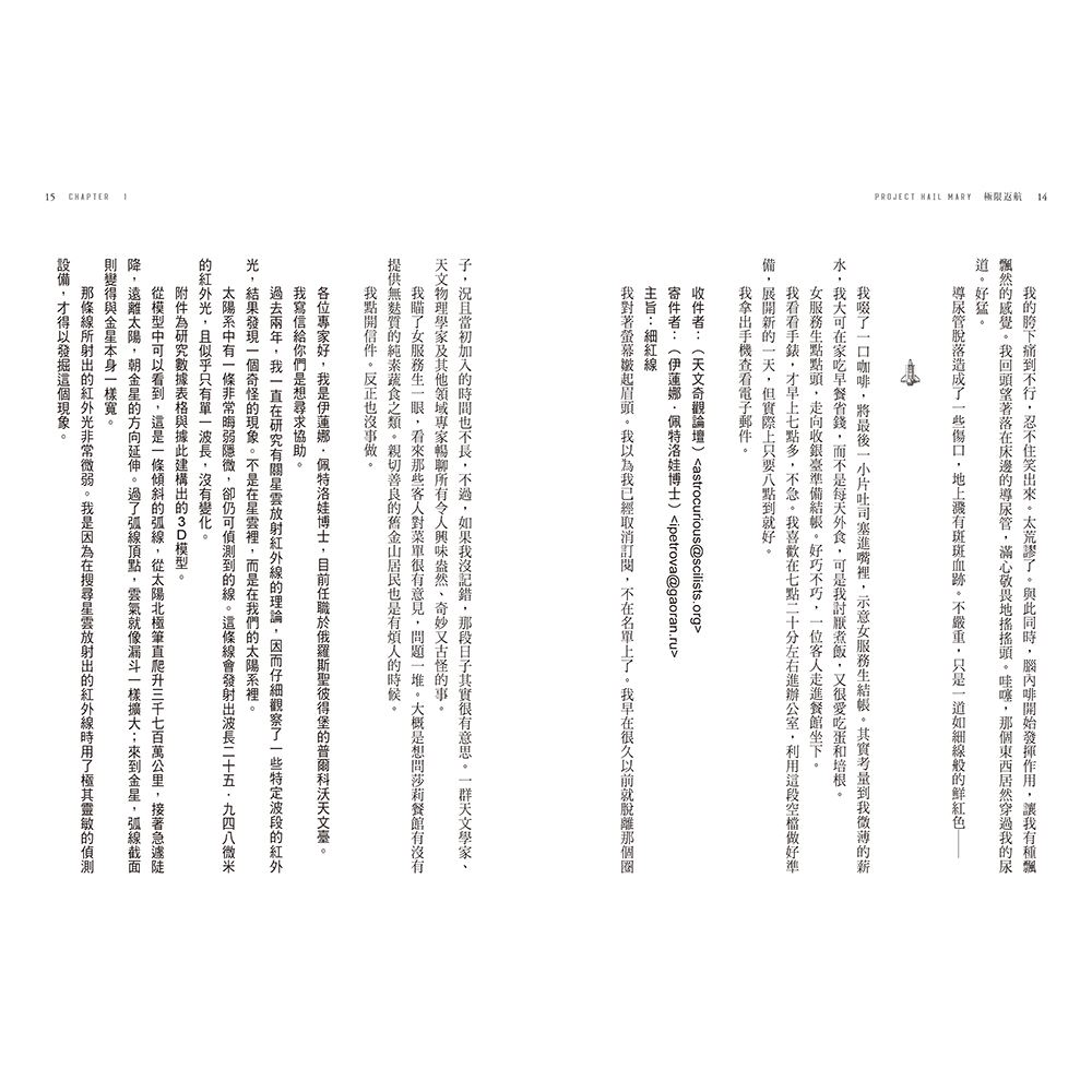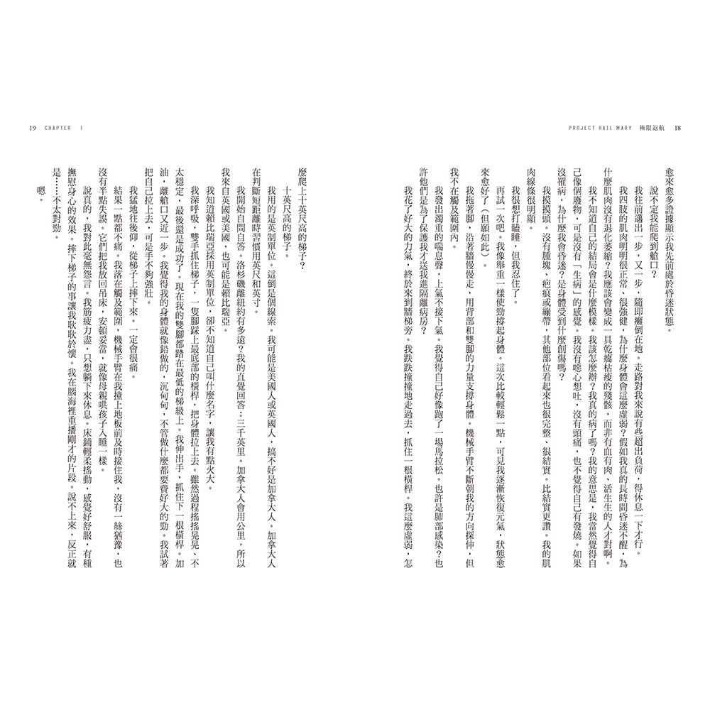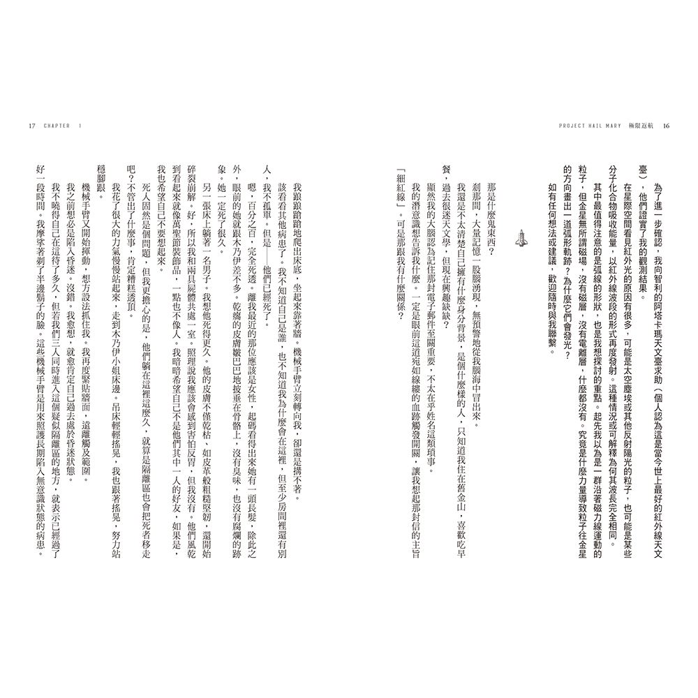 肩負拯救地球的使命,格雷斯不得不獨自航向十幾光年外的星系,解開神秘紅線之謎,同時明白這是一趟有去無回的自殺任務。在絕望之際,一位意料之外的訪客現身,也讓他重燃返航的希望。究竟格雷斯能否以人類英雄之名重返地球?抑或他會墜落星際,在虛無太空中永恆漂流?
