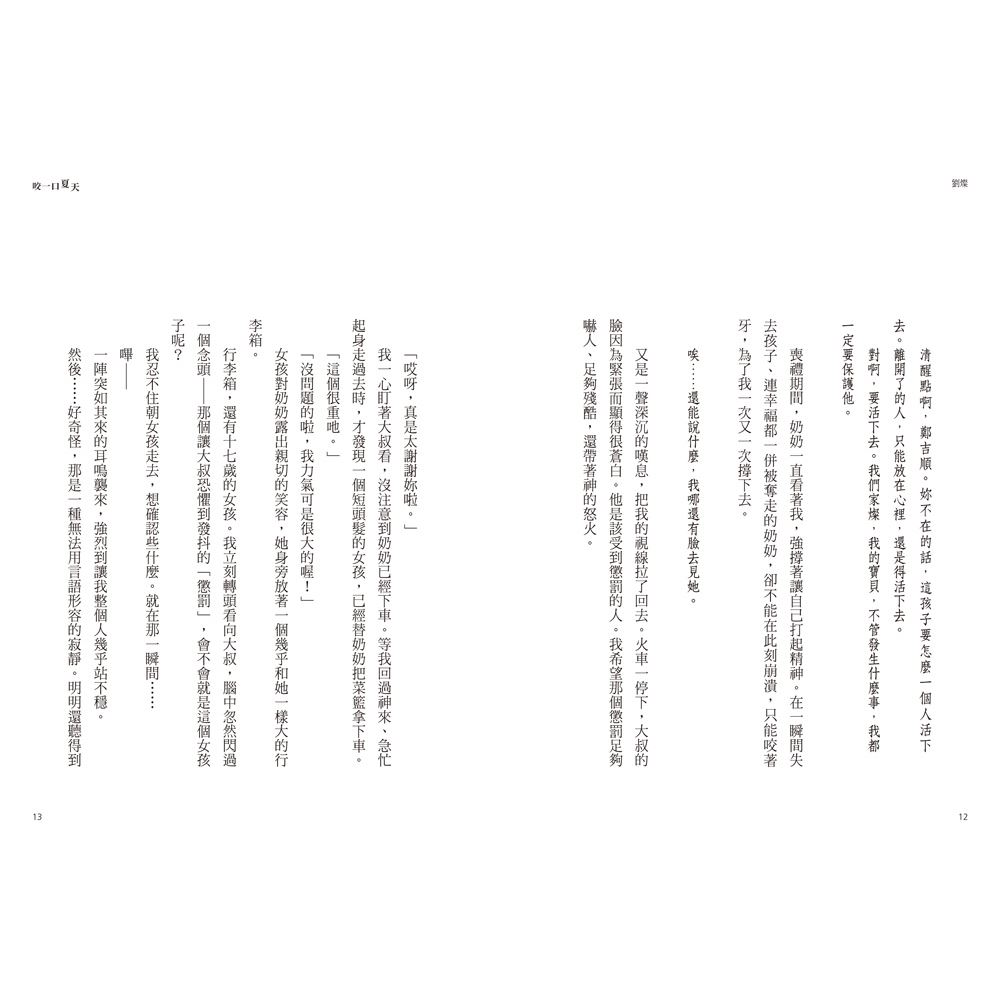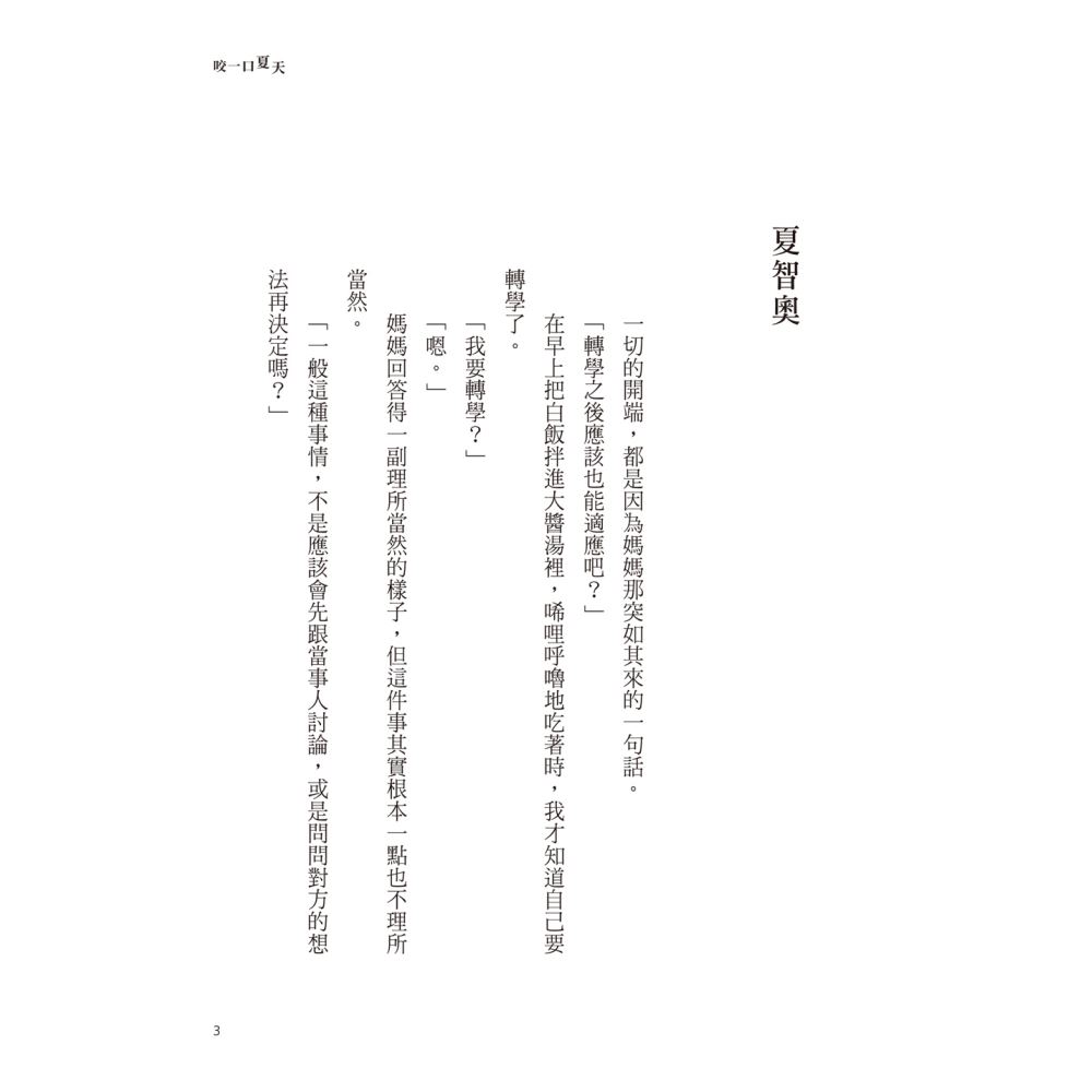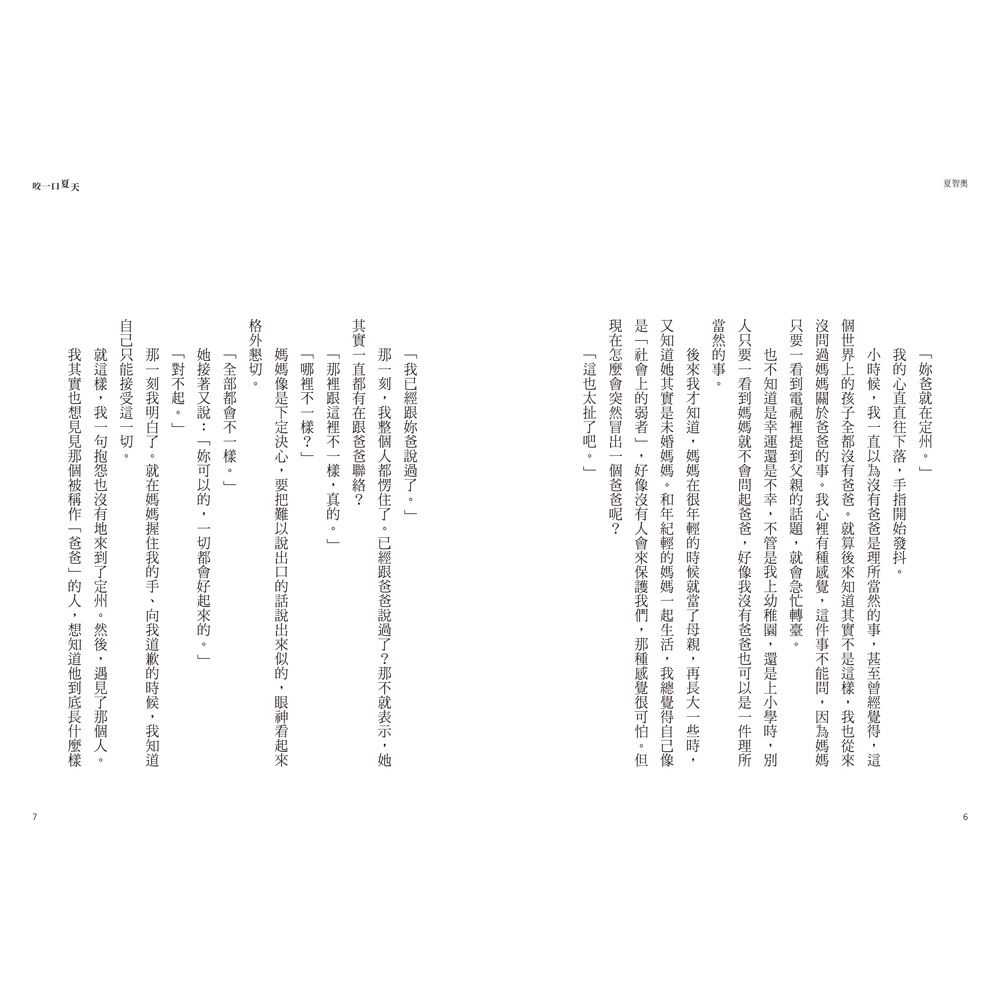 ●「這是我今年讀過翻頁最快的小說!視角切換得非常流暢,劉燦的孤獨與智奧的倔強碰撞在一起時,火花四濺。如果你覺得生活很枯燥、想找回對世界的期待,請務必『吃掉』這口夏天。」
