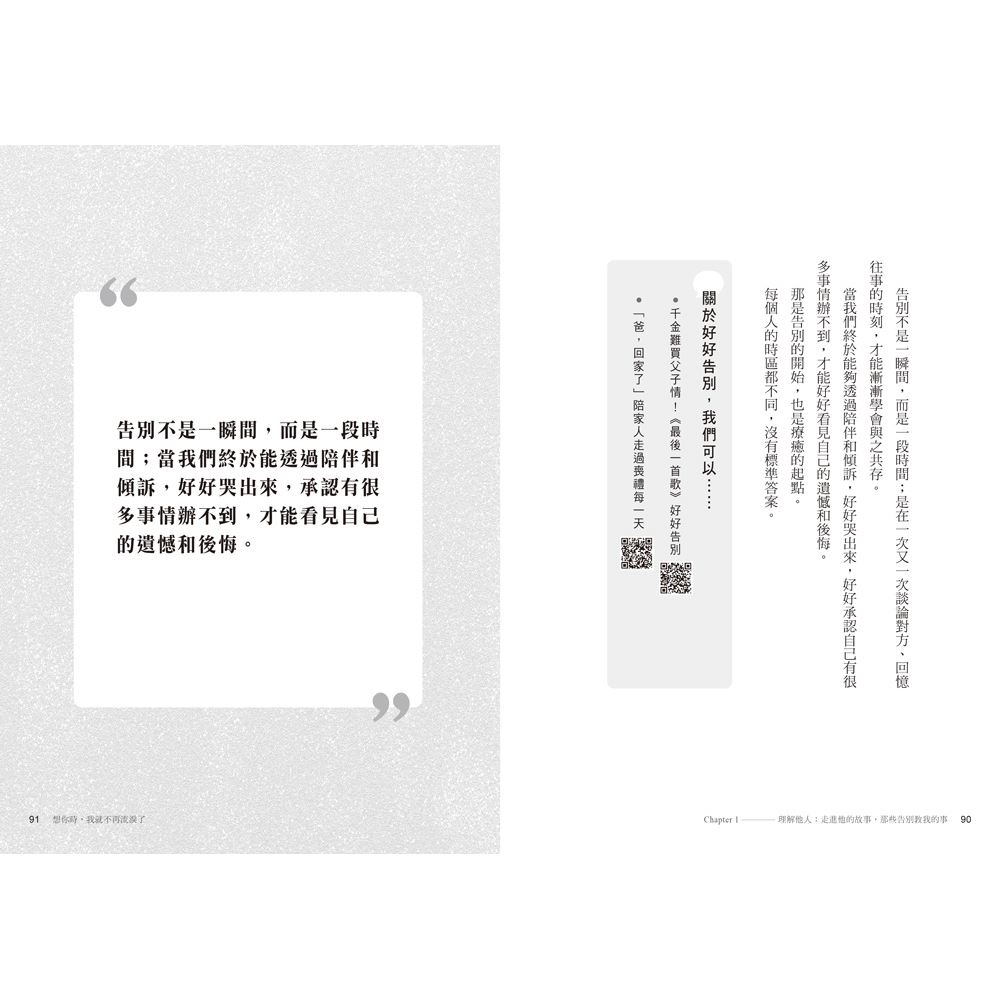 當告別時刻來臨,靜靜等悲傷走過。某一天,你會發現,想念時流下的淚也能帶著笑容,而遺憾,終於慢慢放下了。