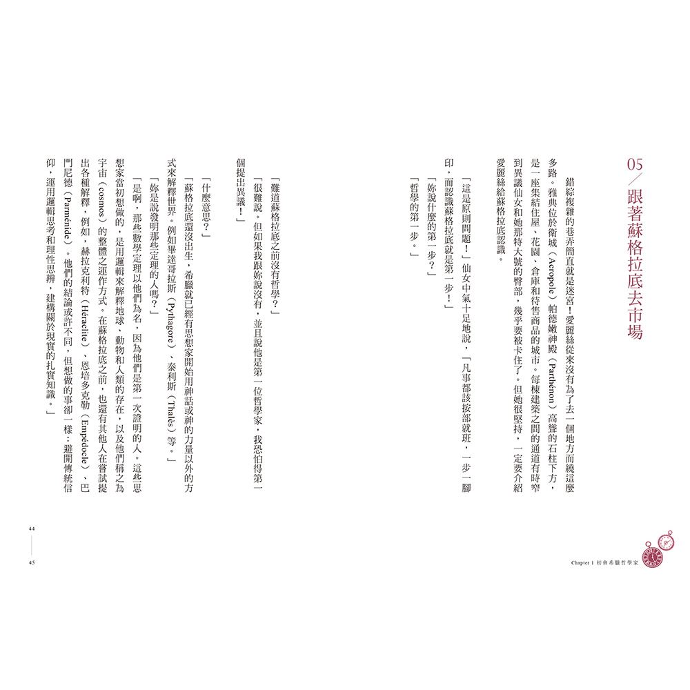 「是啊,那些數學定理以他們為名,因為他們是第一次證明的人。這些思想家當初想做的,是用邏輯來解釋地球、動物和人類的存在,以及他們稱之為宇宙(cosmos)的整體之運作方式。在蘇格拉底之前,也還有其他人在嘗試提出各種解釋,例如,赫拉克利特(Héraclite)、恩培多克勒(Empédocle)、巴門尼德(Parménide)。他們的結論或許不同,但想做的事卻一樣:避開傳統信仰,運用邏輯思考和理性思辨,建構關於現實的扎實知識。」