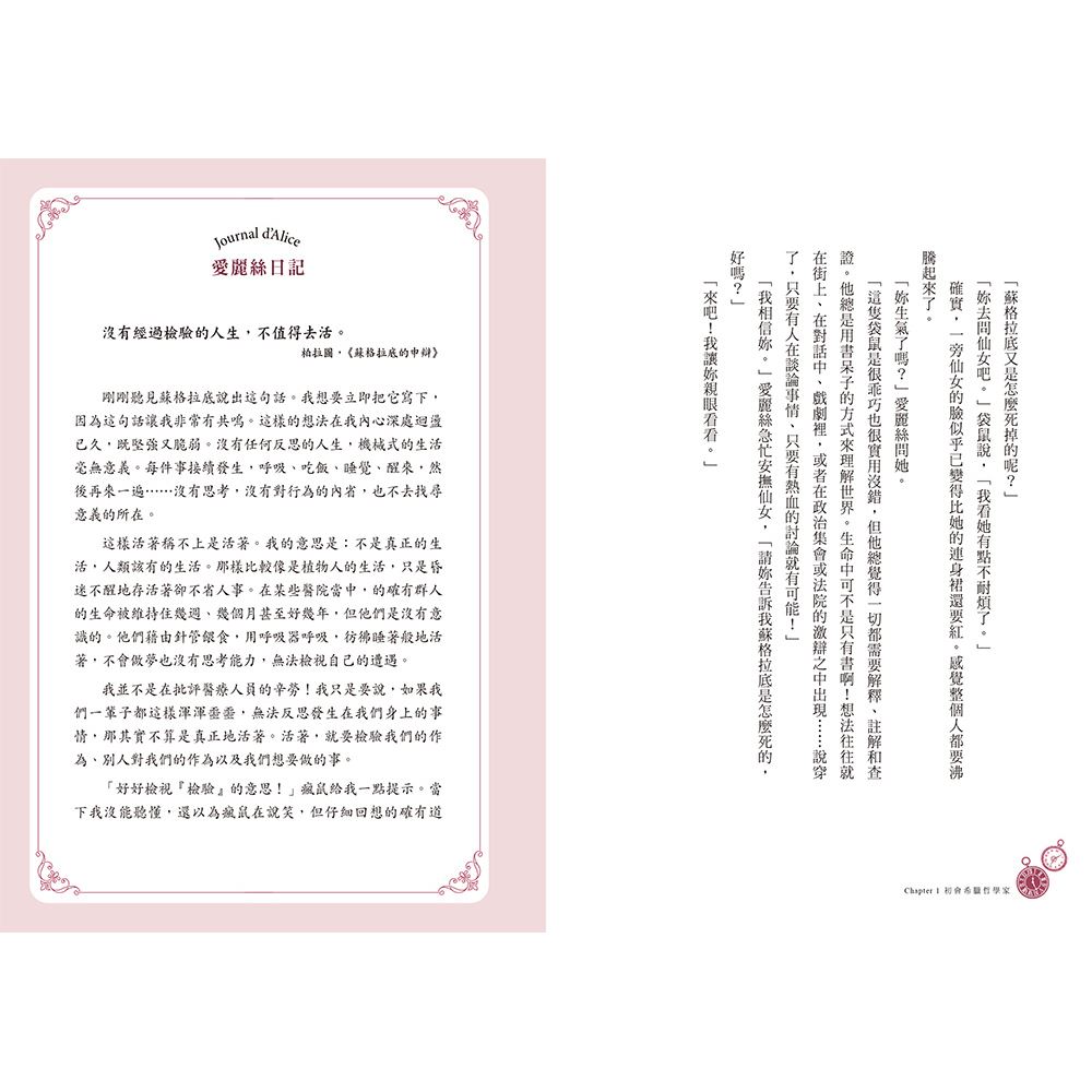 愛麗絲對他的第一印象出乎意料地好:總算有大人不是整天只在乎消費!更何況這市場的商品並非全都是沒有用的玩意兒、非必要的新產品或愚蠢的發明。事實上仙女偷偷告訴她,蘇格拉底只對必要品有興趣。一件外套就夠他禦寒,即便冬天下雪,他也只穿同一雙皮製涼鞋。對他來說最重要的就是想法。