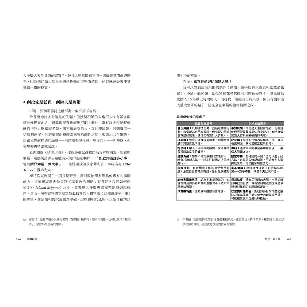 「一本關於風險的沈思錄,一項對那些最擅長承擔風險者的研究,也邀請讀者思考,為何如今我們的生活,似乎有越來越多部分都懸於風險之上。」——《紐約時報》(New York Times)