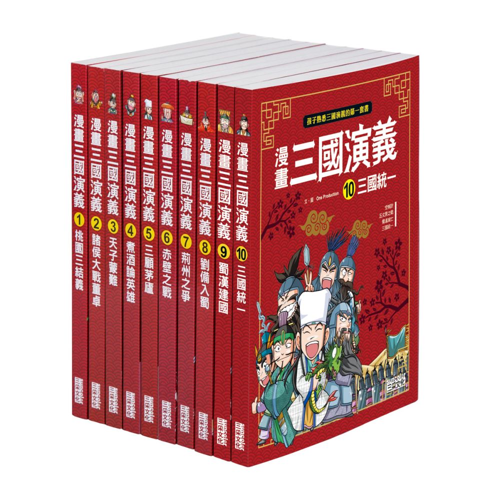 為了讓孩子們能夠輕鬆踏入《三國演義》龐大又恢宏的舞台,我們將它改編成10本一套的《漫畫三國演義》,內容避免過度簡化故事,但不忘發揮圖像所獨有的特性,刪去了龐雜的敘述,讓內容更具趣味性。每本書的附錄都有延伸的資訊,能夠幫助孩子理解三國這個特別的時代。除此之外,每格漫畫的組成與對話也都盡量配合讀者,最重要的是能讓孩子們感到閱讀《三國演義》的樂趣。