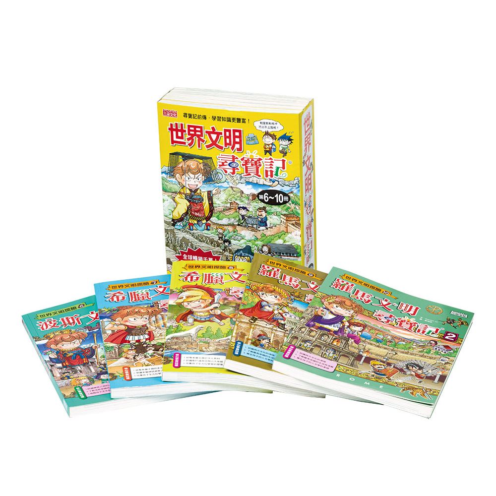 《尋寶記系列》在全球暢銷2100萬冊,是亞洲最具影響力的知識漫畫,超過十年時間雄踞各圖書館借閱排行榜、書店排行榜,不斷被票選為最受歡迎課外讀物。由同一個企劃與繪製團隊傾全力製作的《世界文明尋寶記》系列,更是專為即將進入中學生的孩子而製作的一套「尋寶記前傳」。角色人物早為孩子所熟悉,故事情節緊張又刺激,並且藉由一個又一個文明主題,打破國別、地域,統整該文明的重點。內容包羅萬象,有宗教、歷史、神話、傳說、重要的歷史人物、古蹟、典章制度、思想派別、社會型態等,每個重點都是孩子未來學習世界史會讀到的素材。所有的重點都經過企畫團隊的精心設計,融合在漫畫與故事中。每個章節並有精彩的延伸解說頁,孩子一翻再翻時,能逐漸吸收這些文明的重點內容,對未來進入歷史課堂奠下基礎,是孩子必備的一套中學先修讀物。