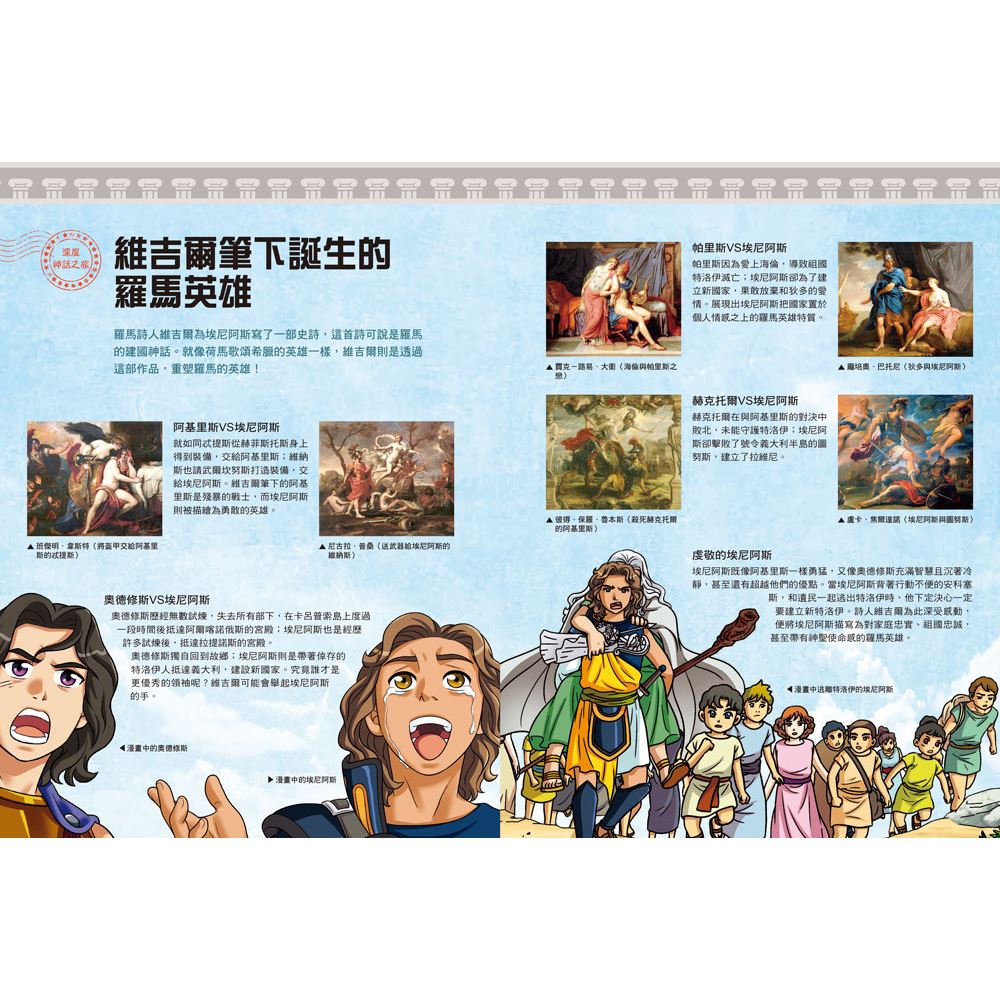 神話也是如此,隨著羅馬人接觸希臘人並接受他們的文化,進而發展自身的神話,展開全新的創作。人們經常將希臘神話與羅馬神話合稱為「希臘羅馬神話」,但是羅馬神話展現了歷史中文明的新潮流。我們可以透過羅馬神話學習不同的文明相遇後,彼此模仿競爭所創造的歷史!