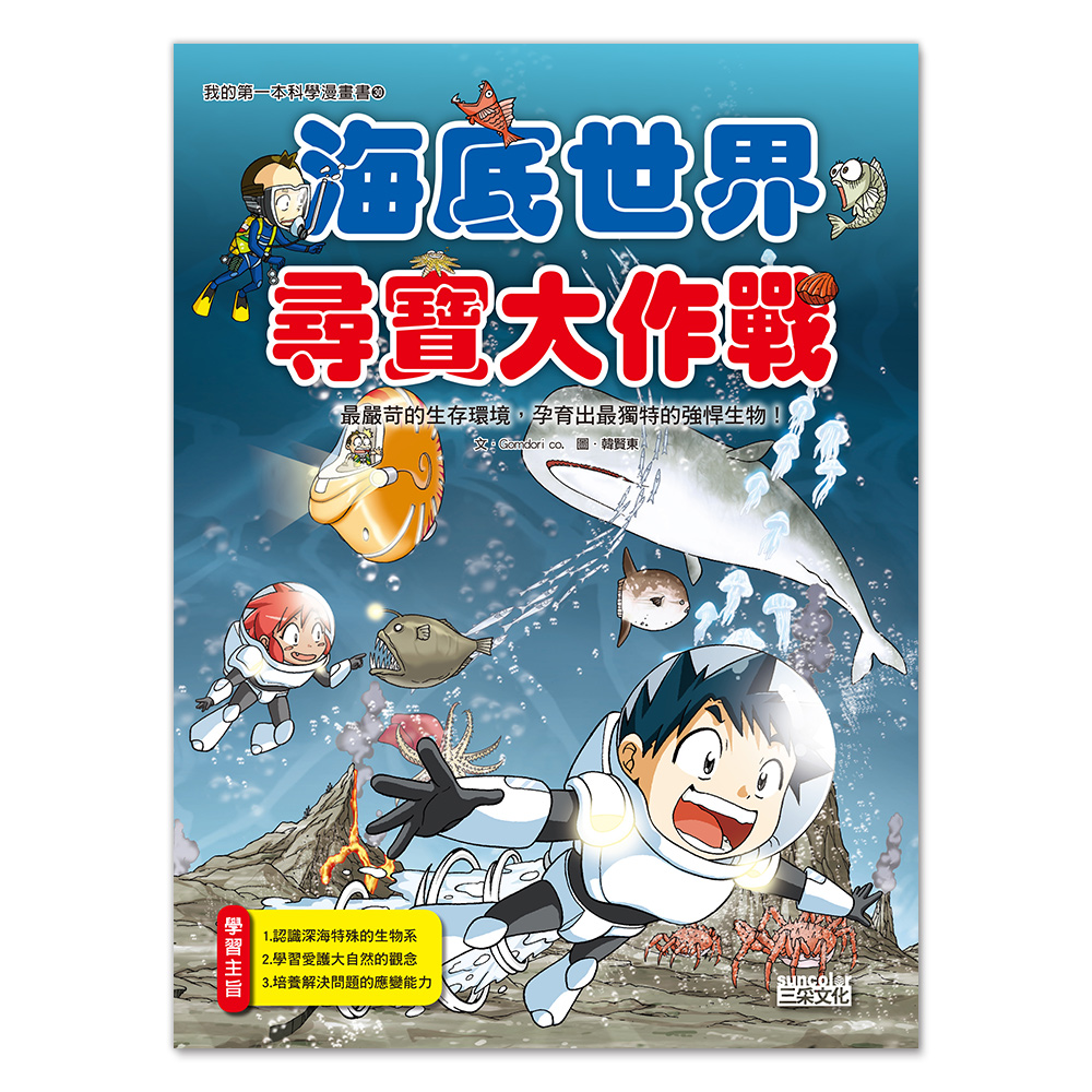 第1章 孔博士的邀請 10 第2章 潛水艇菊石號 26 第3章 深海探險 44 第4章 緊急狀況 64 第5章 斷掉的纜線 80 第6章 巨大海洋生物登場 98 第7章 大王烏賊與抹香鯨的對決 114 第8章 深海生物的用餐時間 130 第9章 逃出深海火山口 144 第10章 金梭魚的攻擊 162 第11章 解不開的深海謎題 178