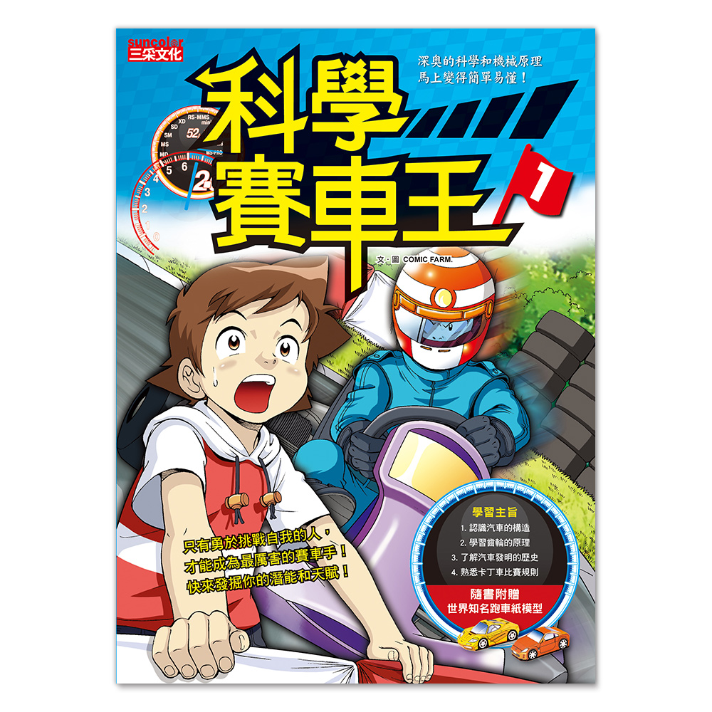 從卡丁車的競速比賽中,學習汽車的歷史、產業、科學原理等各種知識,在橫衝直撞、趣味橫生的競賽之中,原本生硬死板的科學,也會不知不覺變成了容易理解、充滿趣味的遊戲。