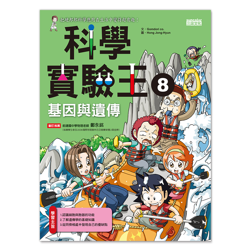 第一部 特別訓練時間 【實驗重點】骨骼的保護功能與連接構造 金頭腦實驗室1 你的皮膚感覺靈敏嗎?感受味道的器官 第二部 我的DNA! 【實驗重點】染色體和DNA、擷取DNA的實驗 金頭腦實驗室2 改變世界的科學家 喬安‧葛利果‧孟德爾 第三部 新的實驗班底 【實驗重點】植物的褐變反應、親手製作天然保養品 金頭腦實驗室3 培養皿的運用方法、玻璃管的運用方式 第四部 深藏不露的才能謀 【實驗重點】被昆蟲咬傷時的治療方法、抗生素耐受性 金頭腦實驗室4 萃取自己的DNA 第五部 精英實驗對決 【實驗重點】血液的生成與功能、ABO型血型鑑別法、骨骼的主要成分與功能 金頭腦實驗室5 生命科學如何影響我們的生活? 第六部 尚未閉合的生長板 【實驗重點】感受味道的器官、動物和人類的身體構造與感官的特性 金頭腦實驗室6 人體的骨骼、人體的肌肉、人體的免疫系統