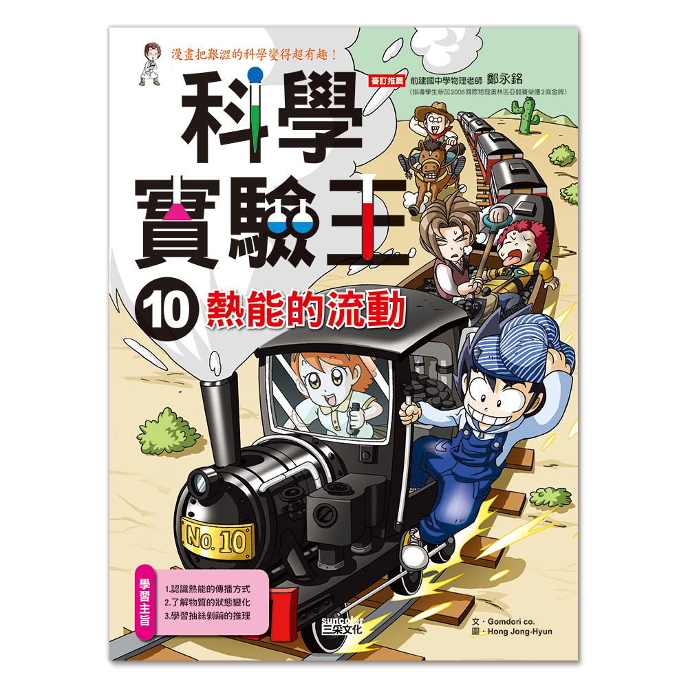 第一部 誰的實驗服? 【實驗重點】 熱能與能量的轉換、熱量的單位 金頭腦實驗室1 觀察熱傳導率的差別、暖空氣的傳播 第二部 艾力克老師 【實驗重點】 物質的最小單位、物質的狀態變化、熔解與凝固實驗 金頭腦實驗室2 改變世界的科學家~華倫海特、攝耳修斯 第三部 士元的實力 【實驗重點】 餅乾熱量測定實驗、人體與熱能 金頭腦實驗室3 如何運用燒杯與毛刷 第四部 真相大白! 【實驗重點】 製作熱汽球、製造龍捲風 金頭腦實驗室4 觀察熱與分子運動之間的關係 第五部 火山少女與冰山少年 【實驗重點】 蒸汽火車的原理、物質加熱的體積變化 金頭腦實驗室5 冷氣機 第六部 瑞娜再見 【實驗重點】 熱的傳播 金頭腦實驗室6 熱能與物質三態變化