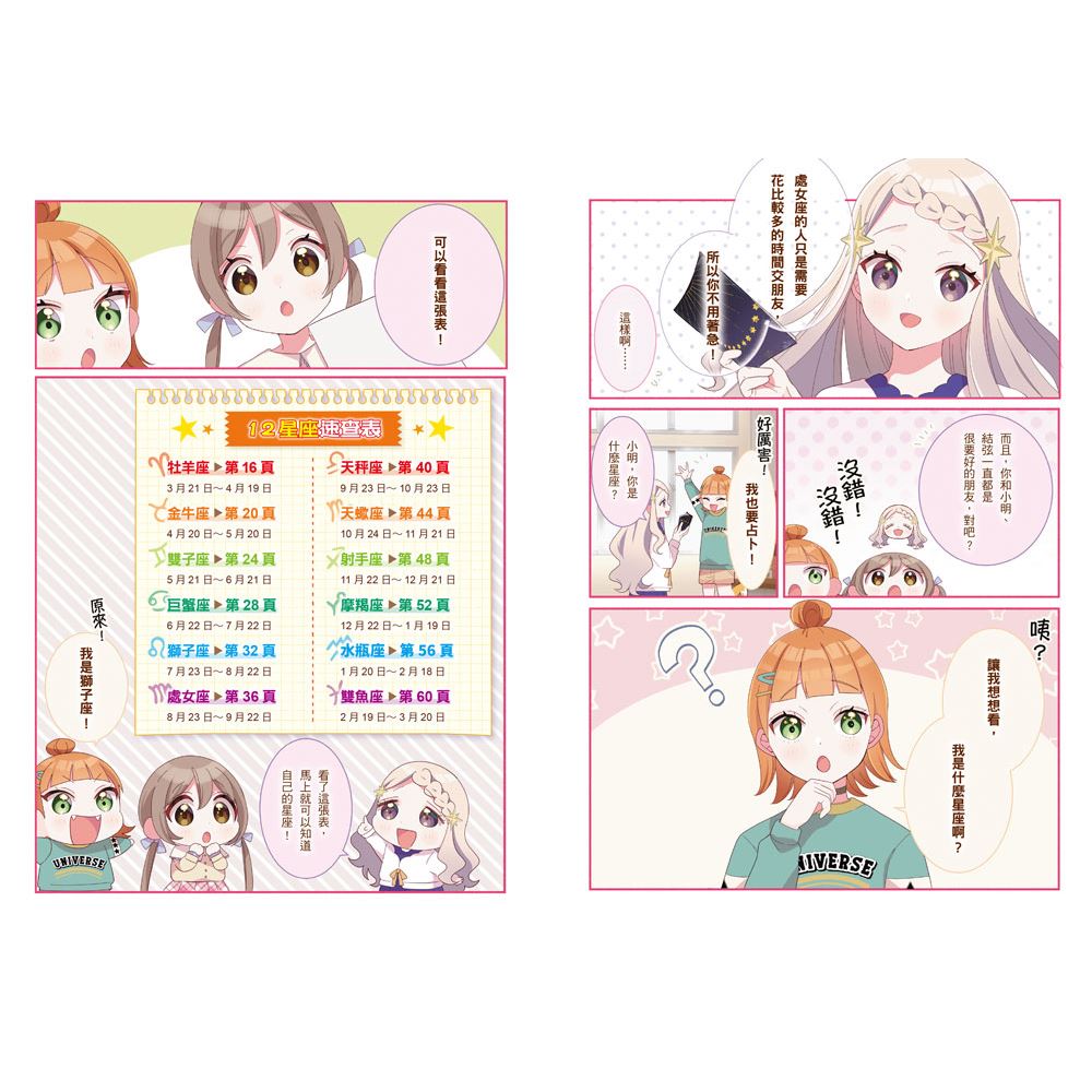 將漫畫帶入校園生活情境,把複雜的占卜知識,轉化成簡單易懂的圖表,新手也能輕鬆上手。