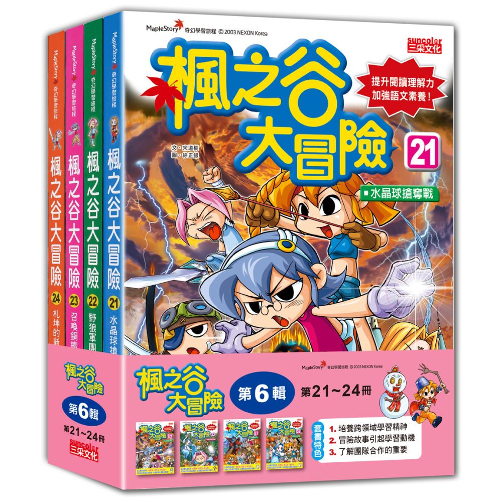 A:因為《楓之谷大冒險》是一個充滿勇氣與歡笑的冒險故事,孩子不僅能從中學習與人相處的團隊精神,還能透過50則問題來思考與作答,這也正是108課綱想要傳達的跨領域學習精神!