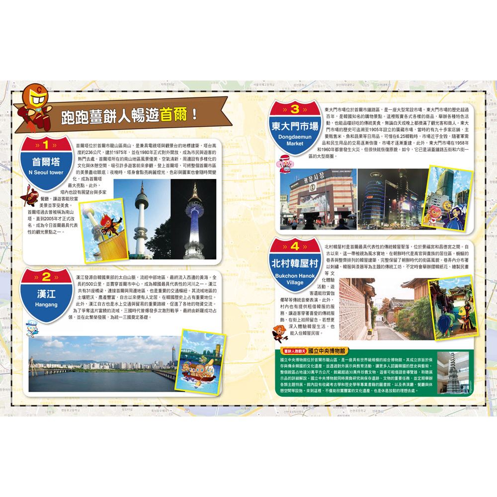 ◎ 關鍵字:首爾、首爾塔、漢江、東大門市場、北村韓屋村、馬羅尼矣公園、景福宮
